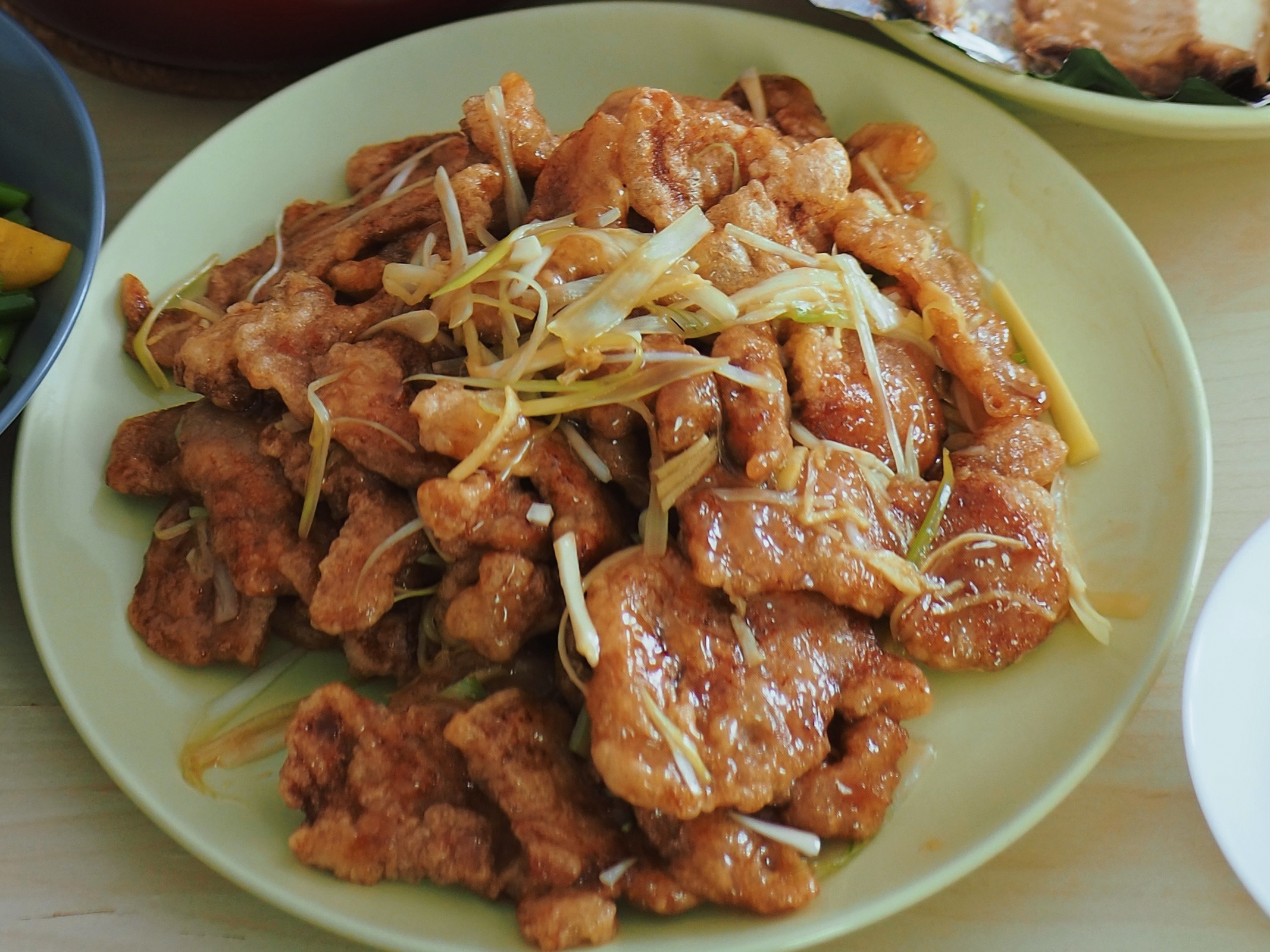 - 猪里脊肉500 g,切片(5~8 mm * 4 cm), 用刀面拍松