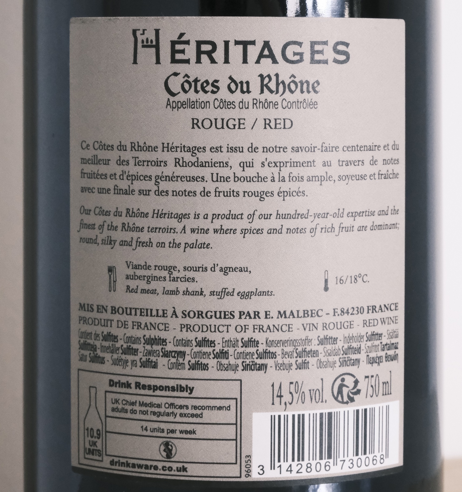 - 区域: Côtes du Rhône (法国南部)