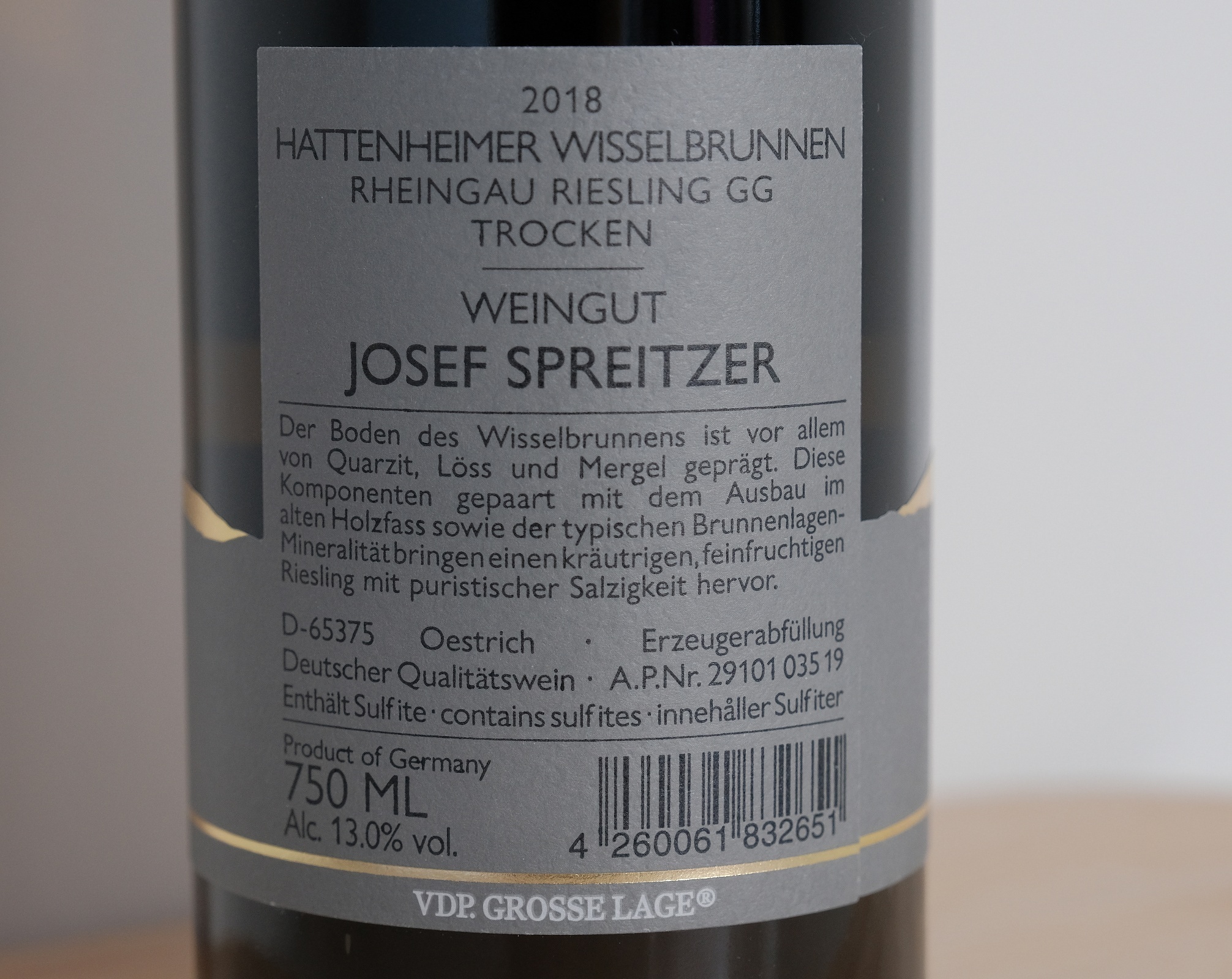 Spreitzer Riesling Hattenheimer Wisselbrunnen GG 2018