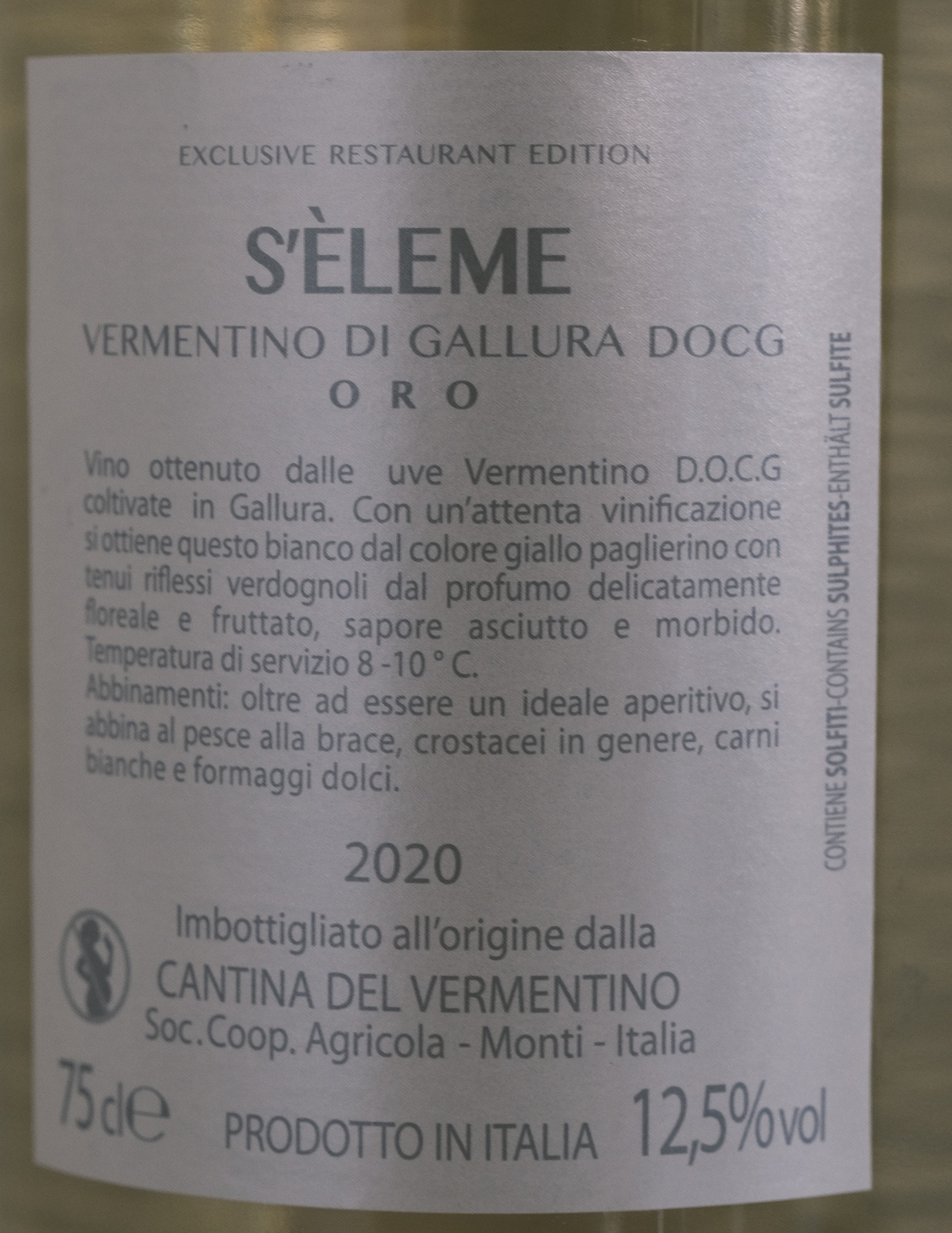 S'ELEME ORO VERMENTINO DI GALLURA DOCG 2020