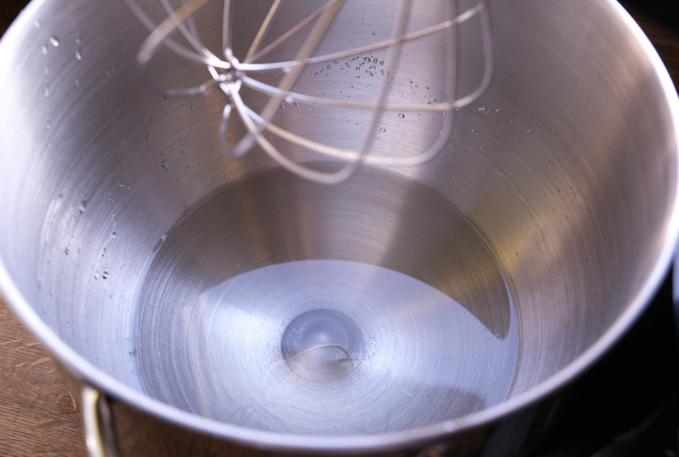 - 白糖溶解在水中,确保温度不能太高,否则蛋液会凝固