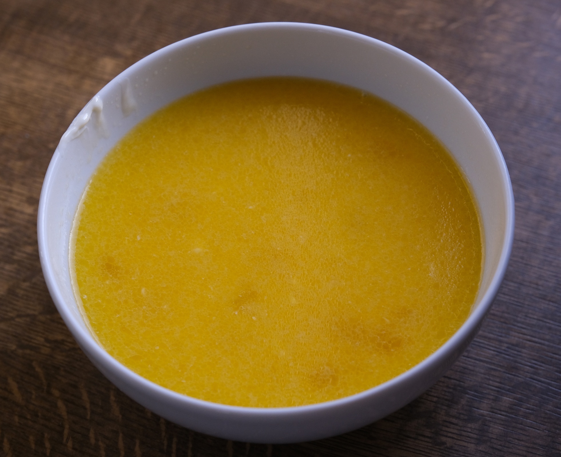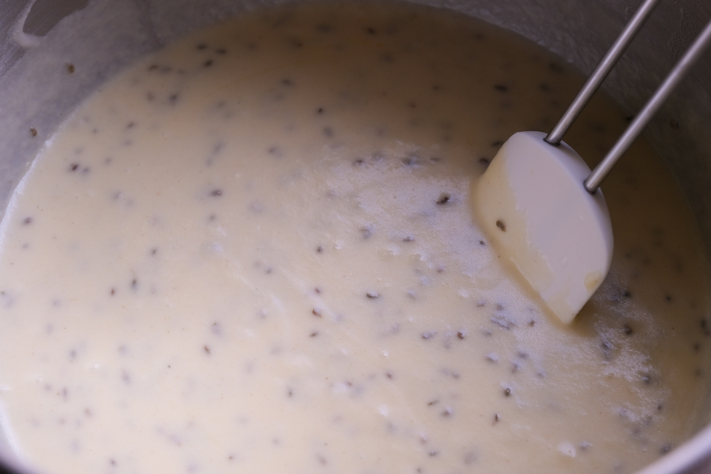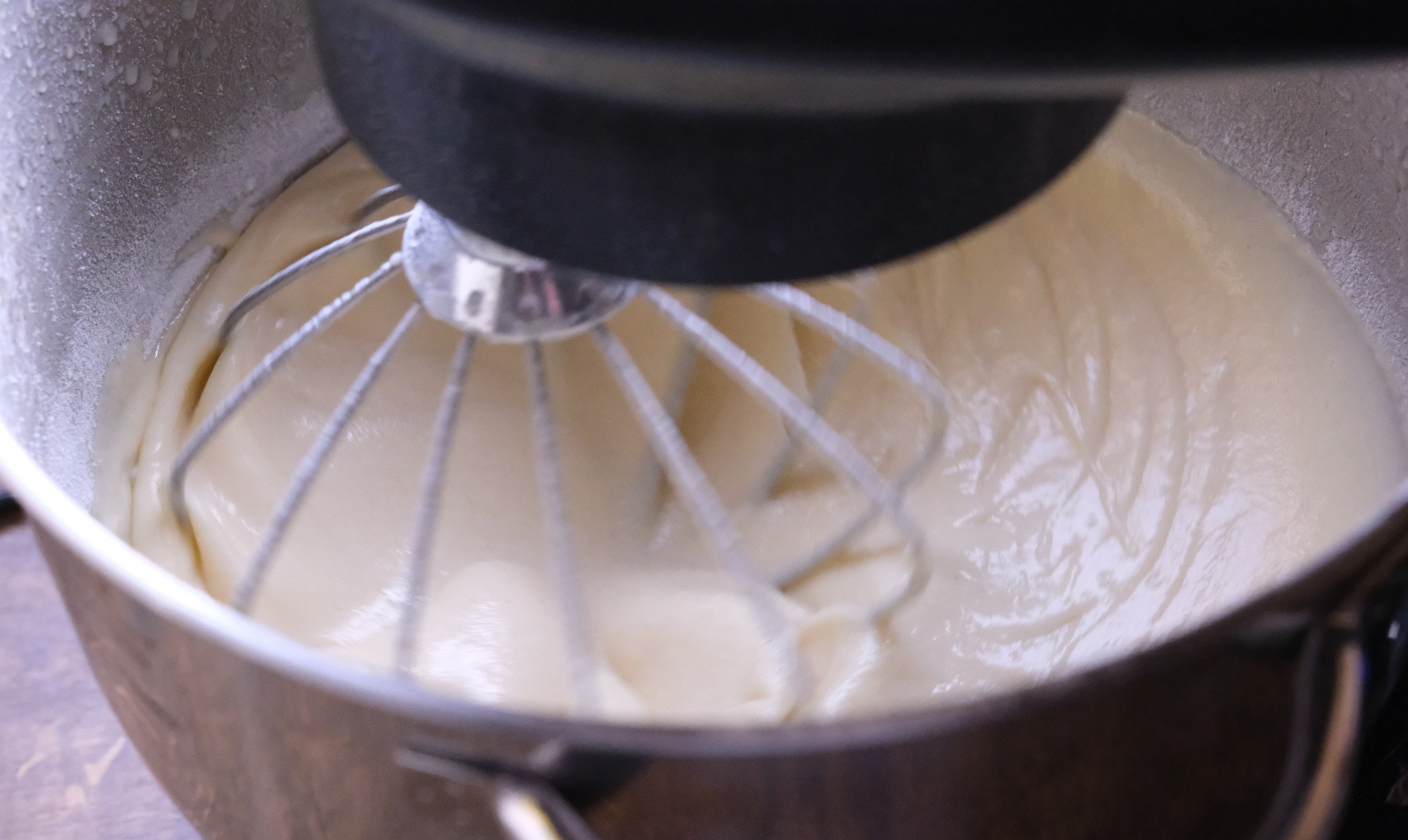 - 黄油充分融化后(不过温度不要太高),加入,充分混合
